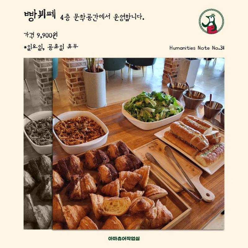 빵뷔페는 4층 문학공간 에서 운영합니다. (일요일, 공휴일 휴무)